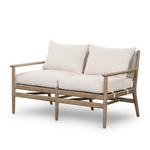 Made with FSC-certified eucalyptus, tapered legs and paddle arms lend a slim, shapely look to outdoor-friendly sofa seating with durable, Velcro-secured box cushions in a versatile ivory. Linear rope detailing on back adds novel texture. Cover or store indoors during inclement weather and when not in use.
