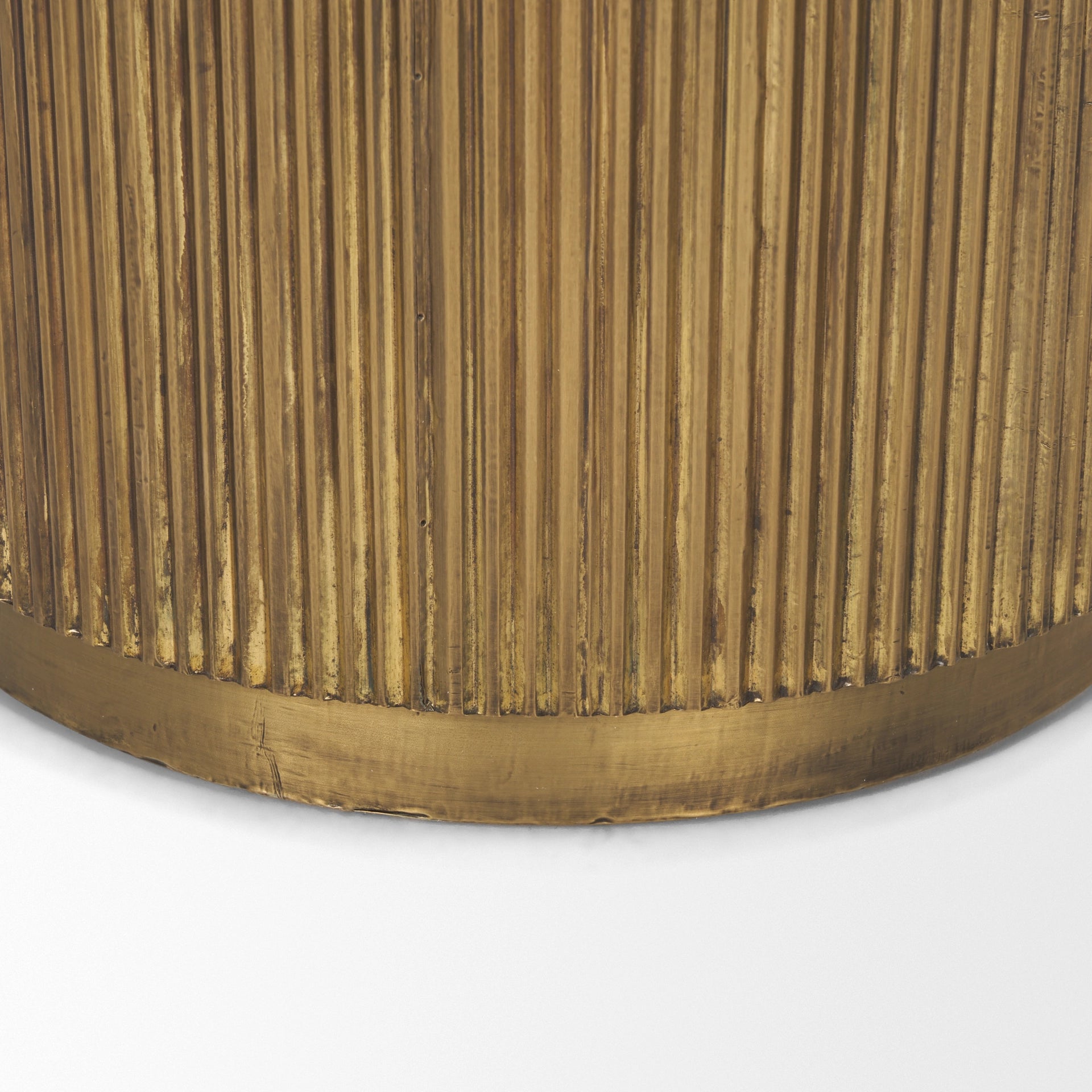 Satima White Marble w/ Gold Metal Round Fluted Accent Table