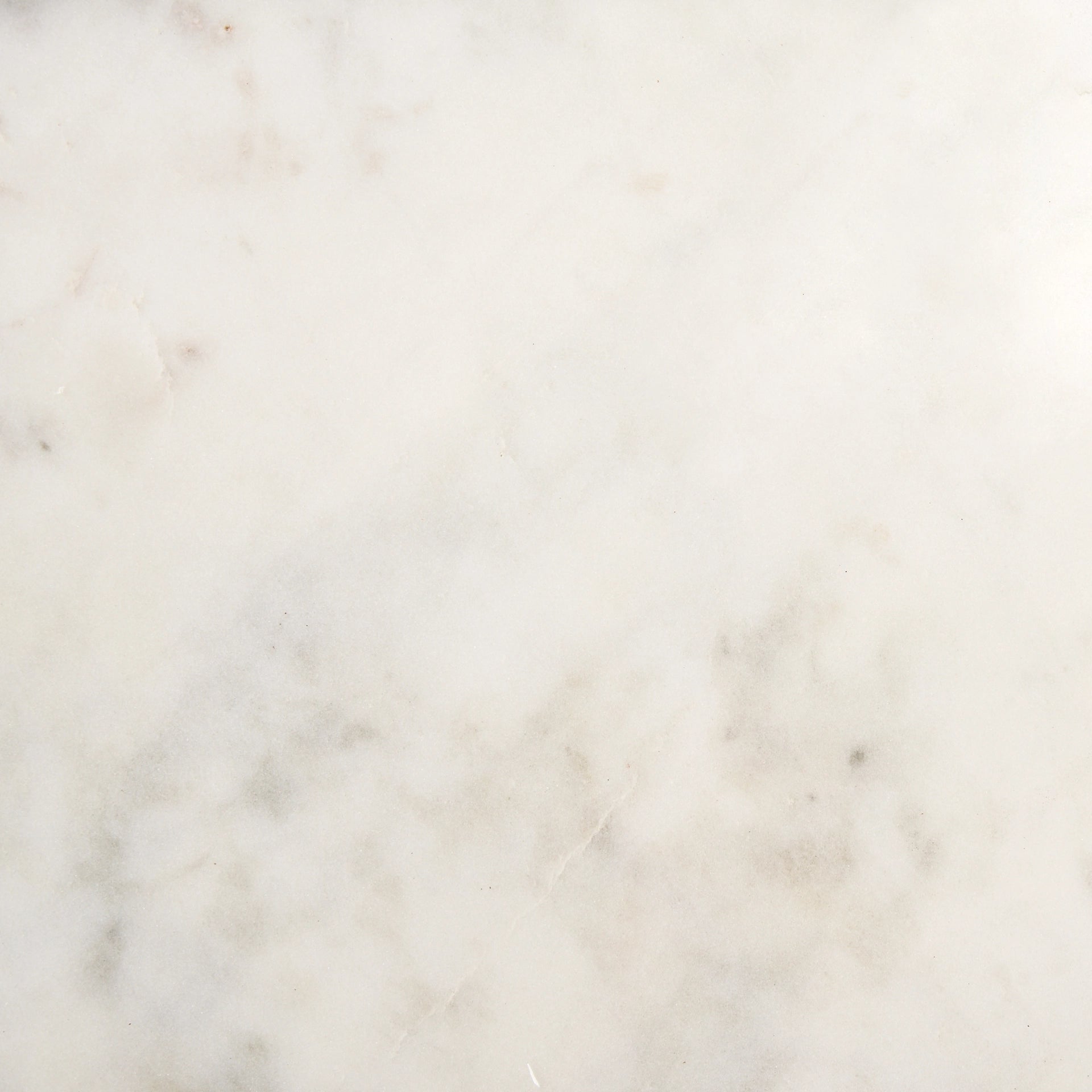 Satima is an alluring accent table with a round white marble top and fluted gold metal body.