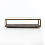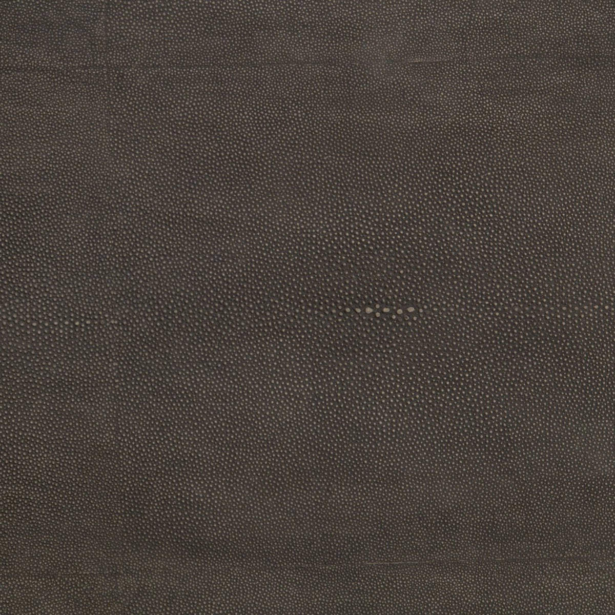 A layer of grey faux shagreen sets an intriguing textural backdrop for prized possessions. Antique brass-finished iron framing and low styling places a fresh, functional spin on the traditional shadowbox.