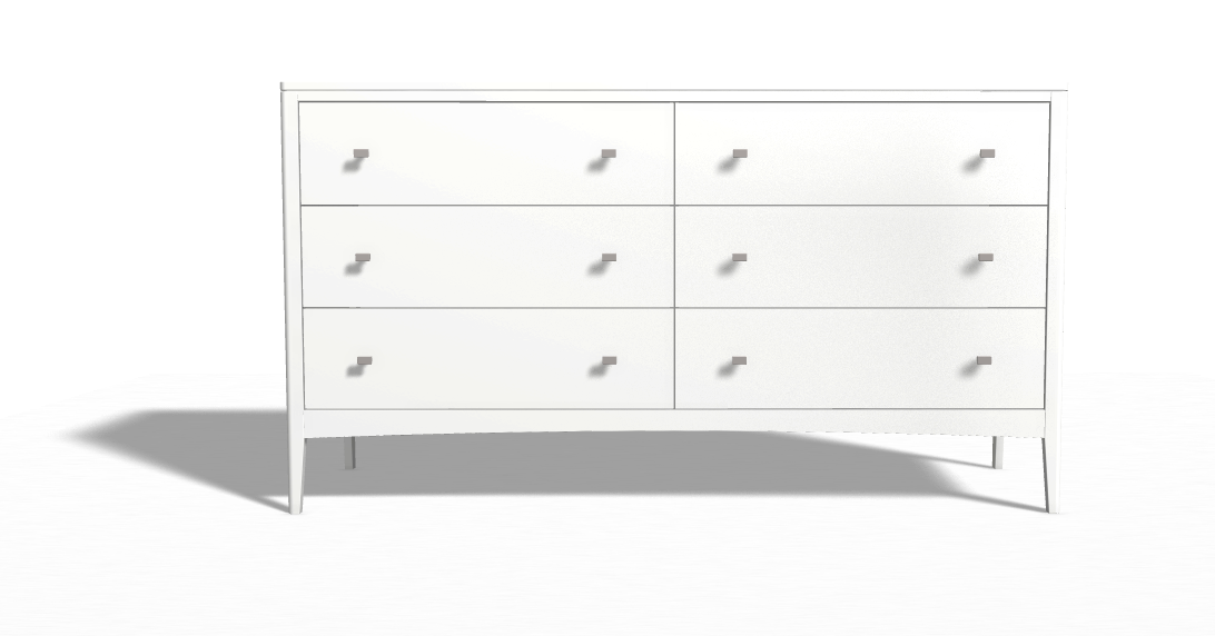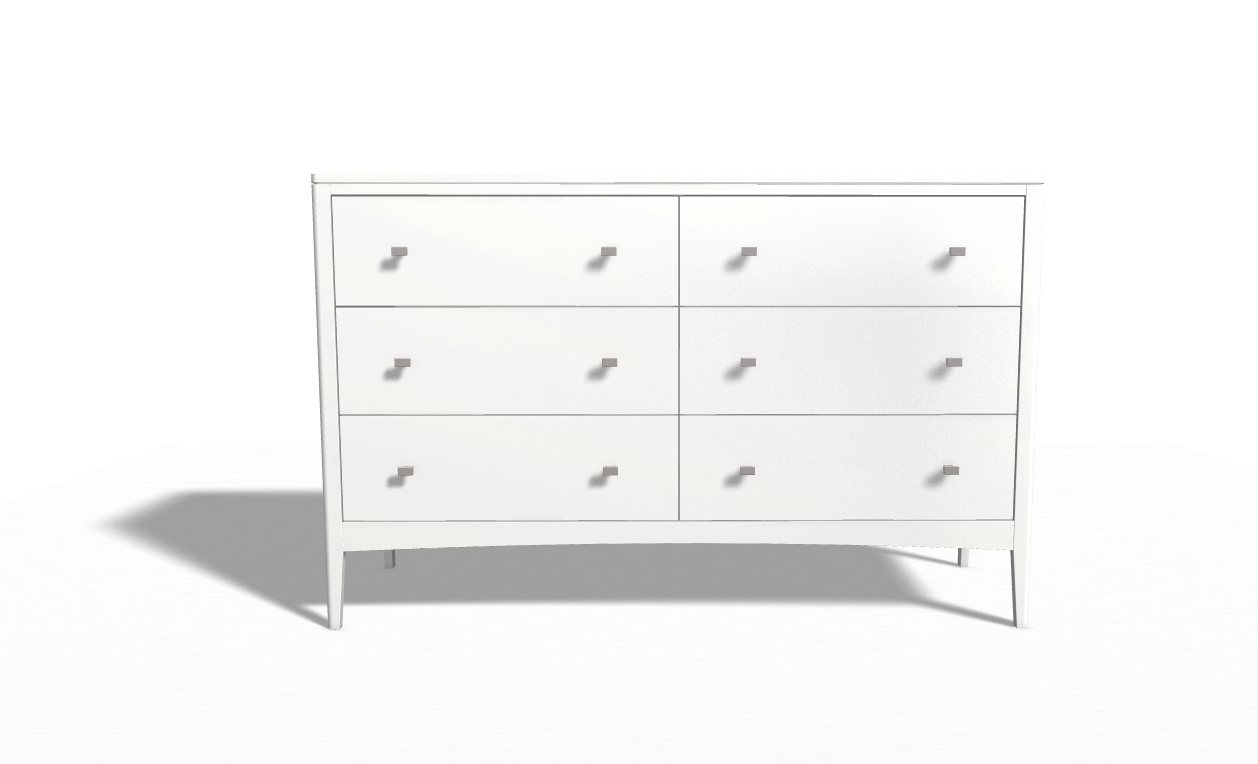 The Soho Dresser features solid maple and select veneers, with four dovetailed drawer boxes and concealed metal slides.