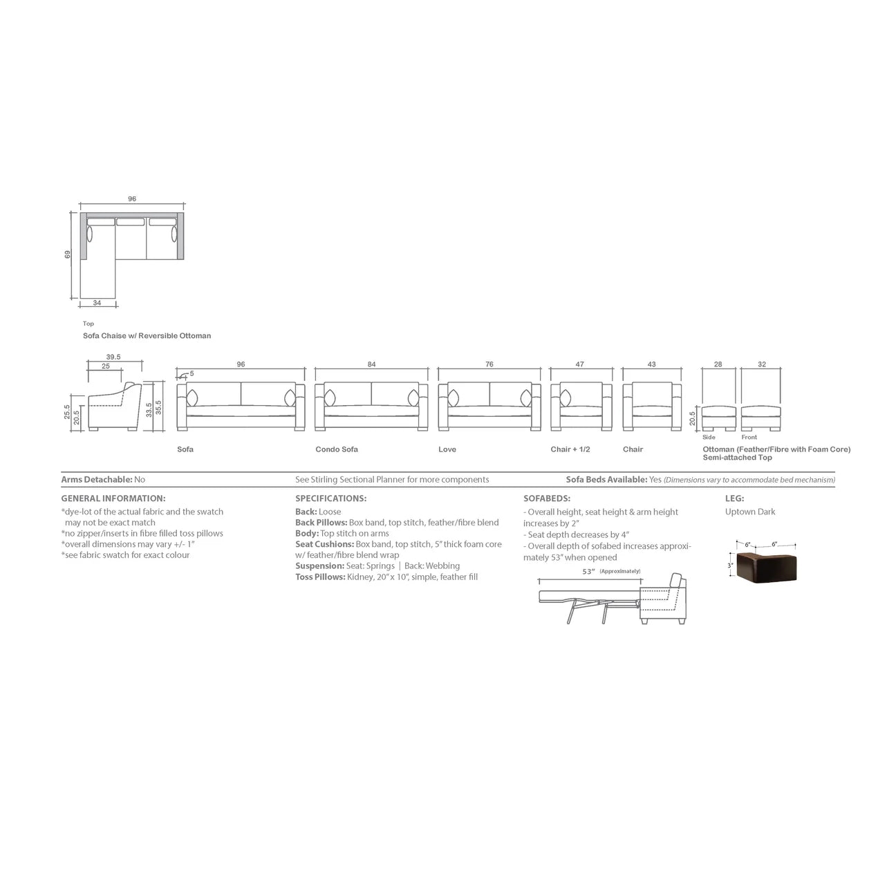 - Condo Sofa: 90"L x 40"D x 32.5"H