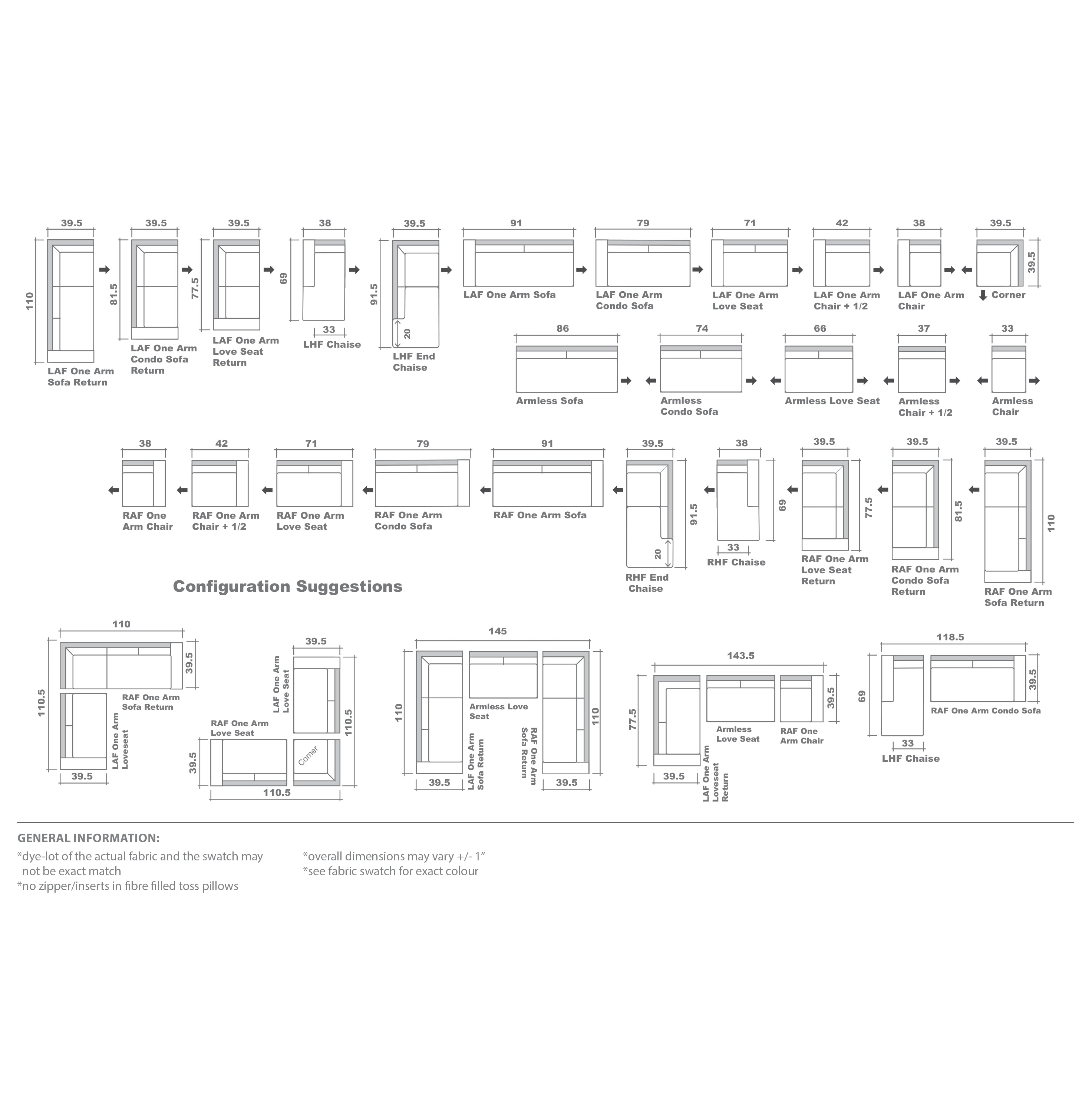 - Chair and a half: 59"L x 40"D x 32.5"H