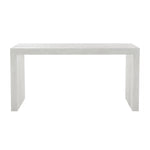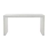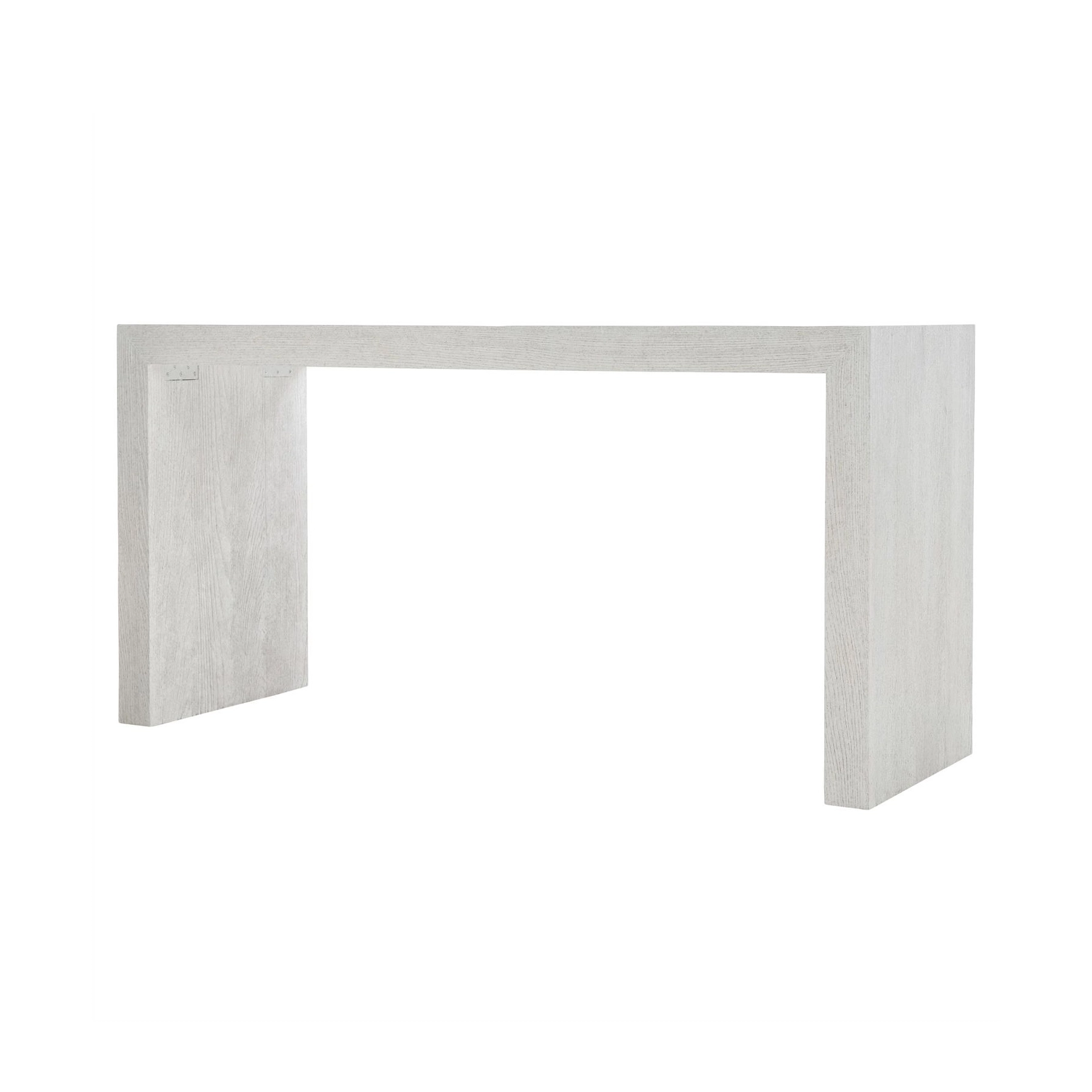 Simple lines are crafted into a sophisticated and spare style in the Summerton console table. Inspired by the iconic Parsons table, this long table creates a bold look that defies its quiet silhouette. Sandblasted ash veneers in a white finish create a light and slightly coastal style.