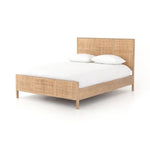 Natural mango frames woven cane, for a light, textural look with fresh organic allure. Three-panel head and foot boards add a detail-rich touch.