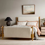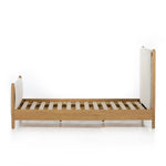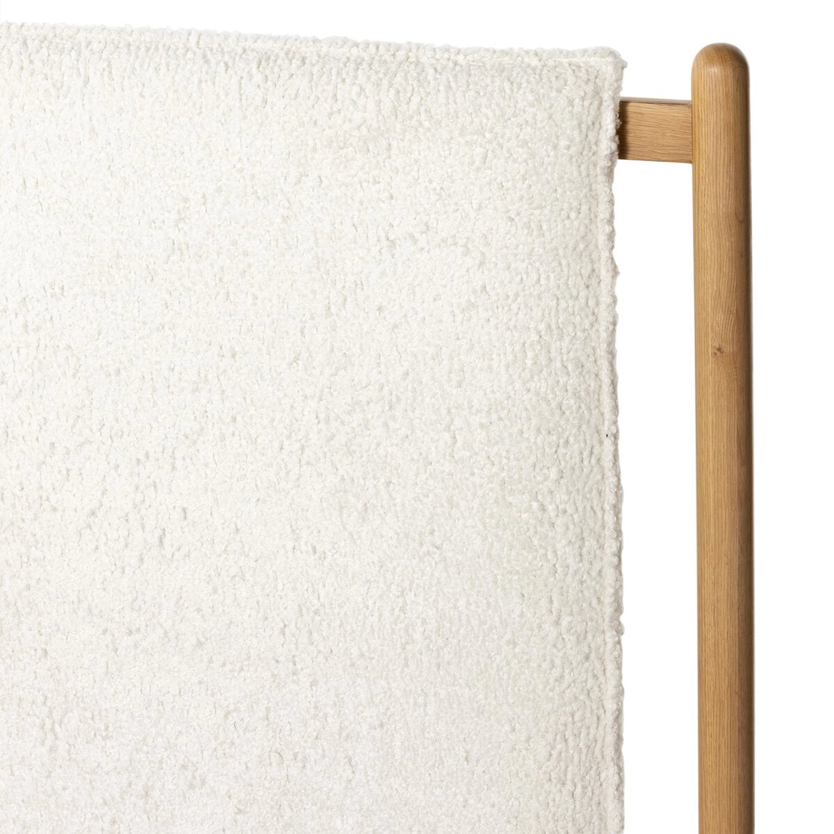Bring a cozy hygge vibe to the bedroom. Framed by light-finished solid oak, a sling-style bed features faux shearling head and foot boards, for welcoming warmth and trend-forward texture alike.