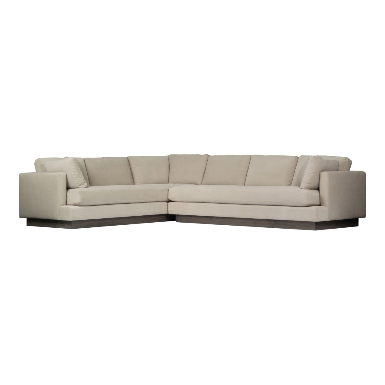 Fabrics/Finishes: Available in a selection of upholstery fabrics and leathers. Wood base available in different finishes. Standard foam and feather cushion options.