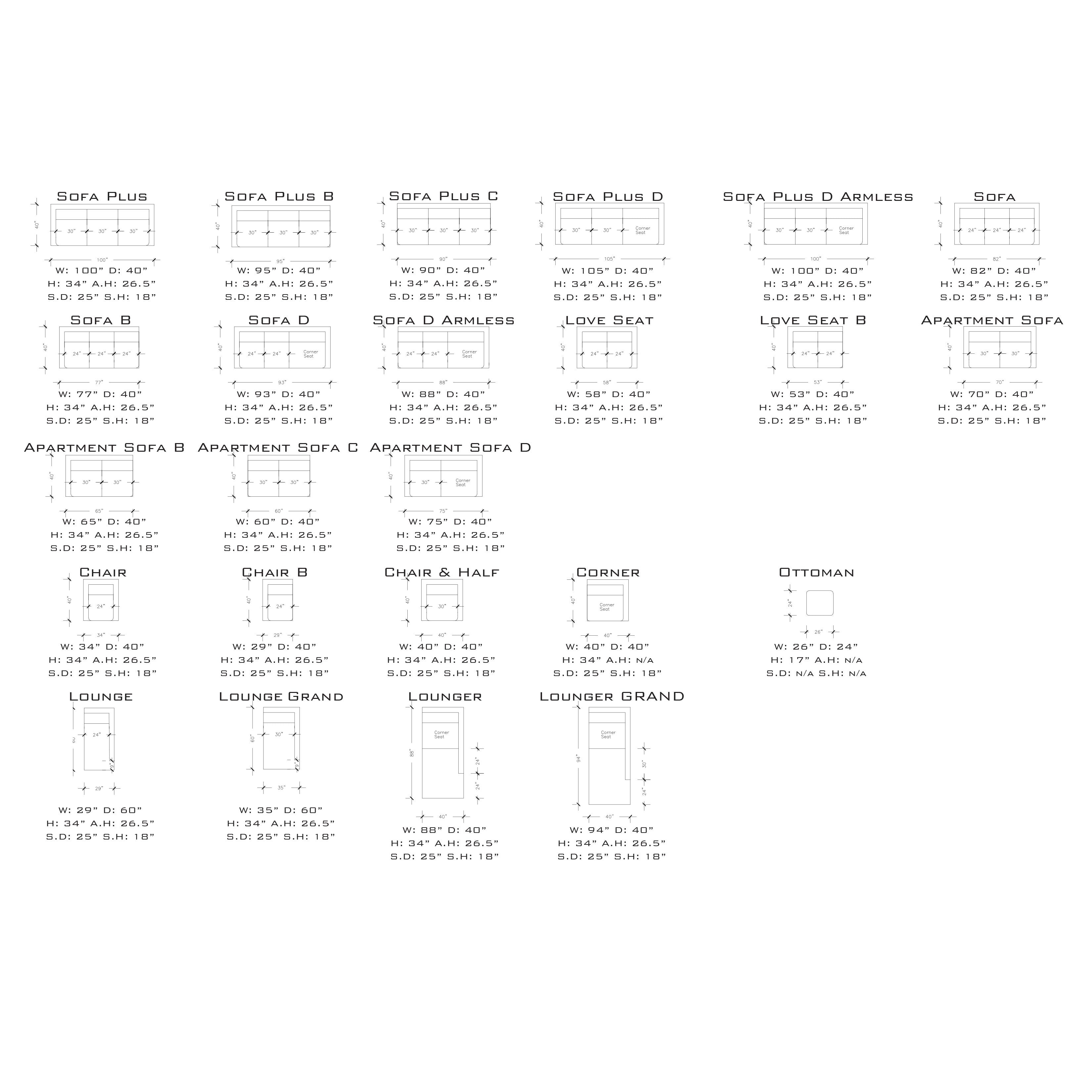 Dimensions: 93”W X 40”D X 165” W X 60”D (chaise) X 34”H