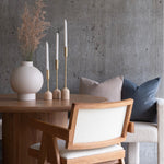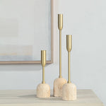 Introducing the Vesta Candle Holder, Satin Brass, the perfect addition to any space seeking an enchanting touch of romance. Indulge in the captivating beauty of these exquisitely designed candle holders that combine timeless elegance with practicality. Crafted from high-quality iron, these candle holders offer lasting durability and reliability that's unmatched. The resilient satin brass finish ensures a long-lasting pristine appeal, whilst offering an additional layer of protection. The stunning plated finish is a standout feature, adding an alluring touch of sophistication to any room. The unique dark spotting at the bottom adds an extra touch of character and charm.